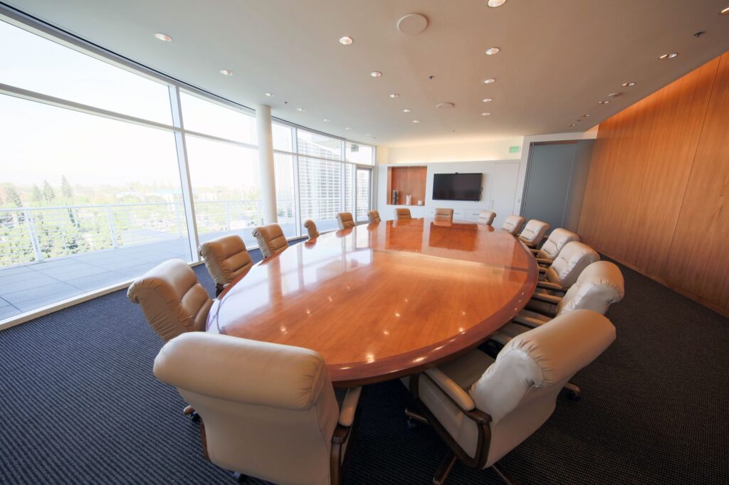 While the boardroom comes with 16 executive chairs, it can seat up to 25 with smaller chivari or folding chairs.